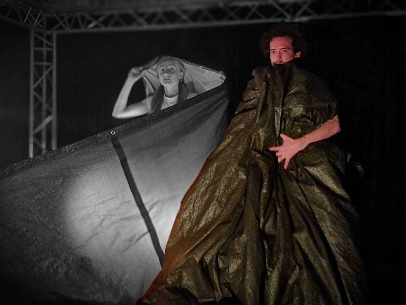 Autorská inscenace o mezní situaci, o momentu, pro který stojí za to žít. Jak přehodnotit předem připravené představy, obecně sdílené názory či hodnoty v konfrontaci s žitou skutečností a vlastní touhou po… štěstí? V situaci krize, kterou přináší srážka člověka s prostředím, člověka s člověkem, jeho s Ní, se snažíme porozumět hlavně sami sobě.